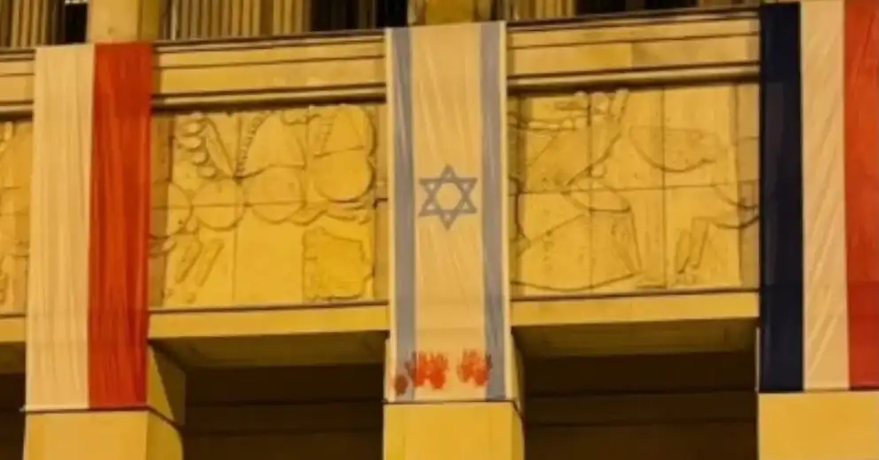 Podczas trwającego w Łodzi festiwalu baletowego nieznany sprawca zniszczył flagę Izraela wywieszoną na fasadzie Teatru Wielkiego. Na tkaninie pojawiły się czerwone ślady farby.