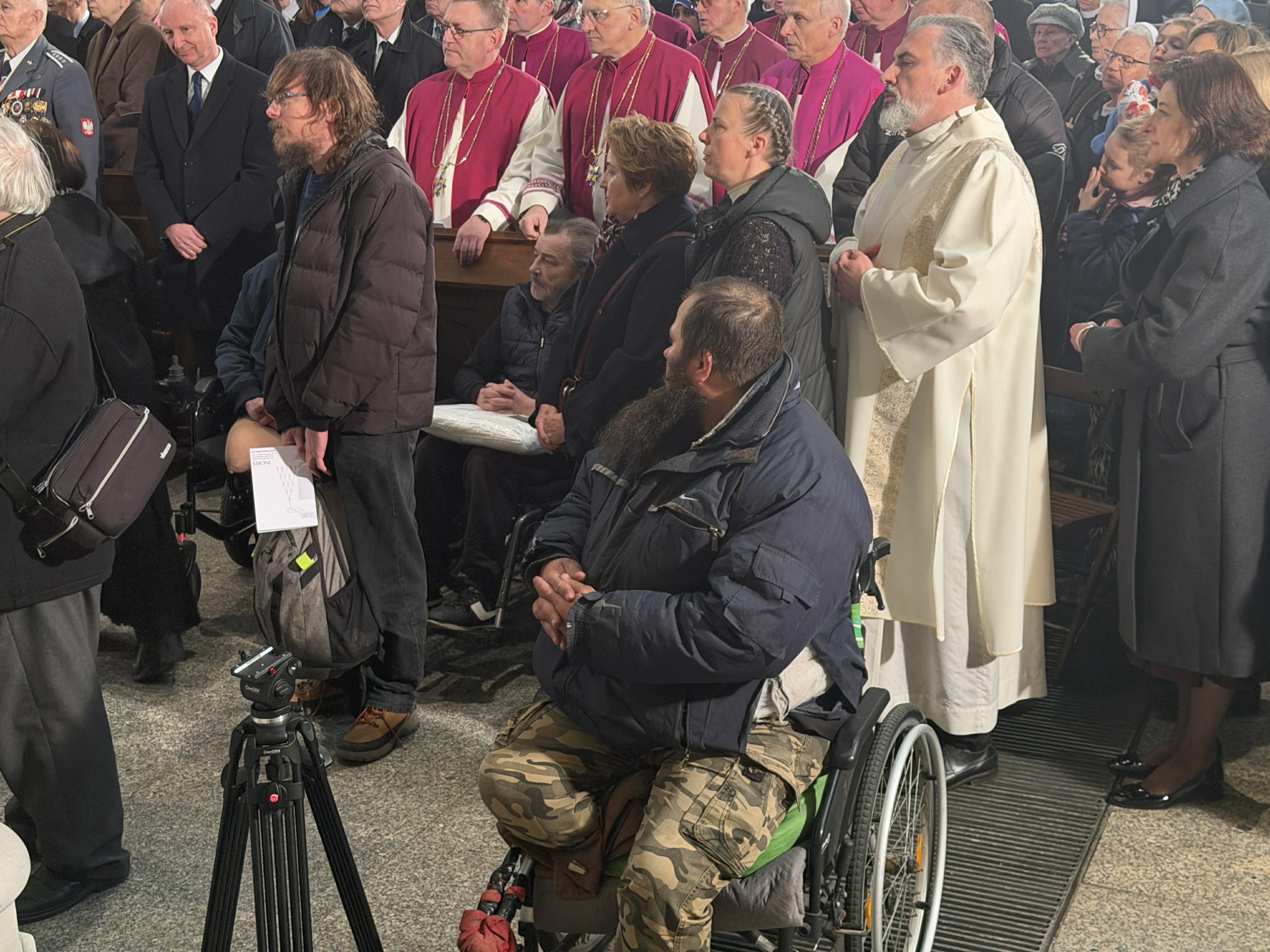 Na końcu uroczystości kard. Krajewski poprosił zebranych o modlitwę i błogosławieństwo w niecodzienny sposób. Uklęknął przed wiernymi i zwrócił się do nich bezpośrednio.