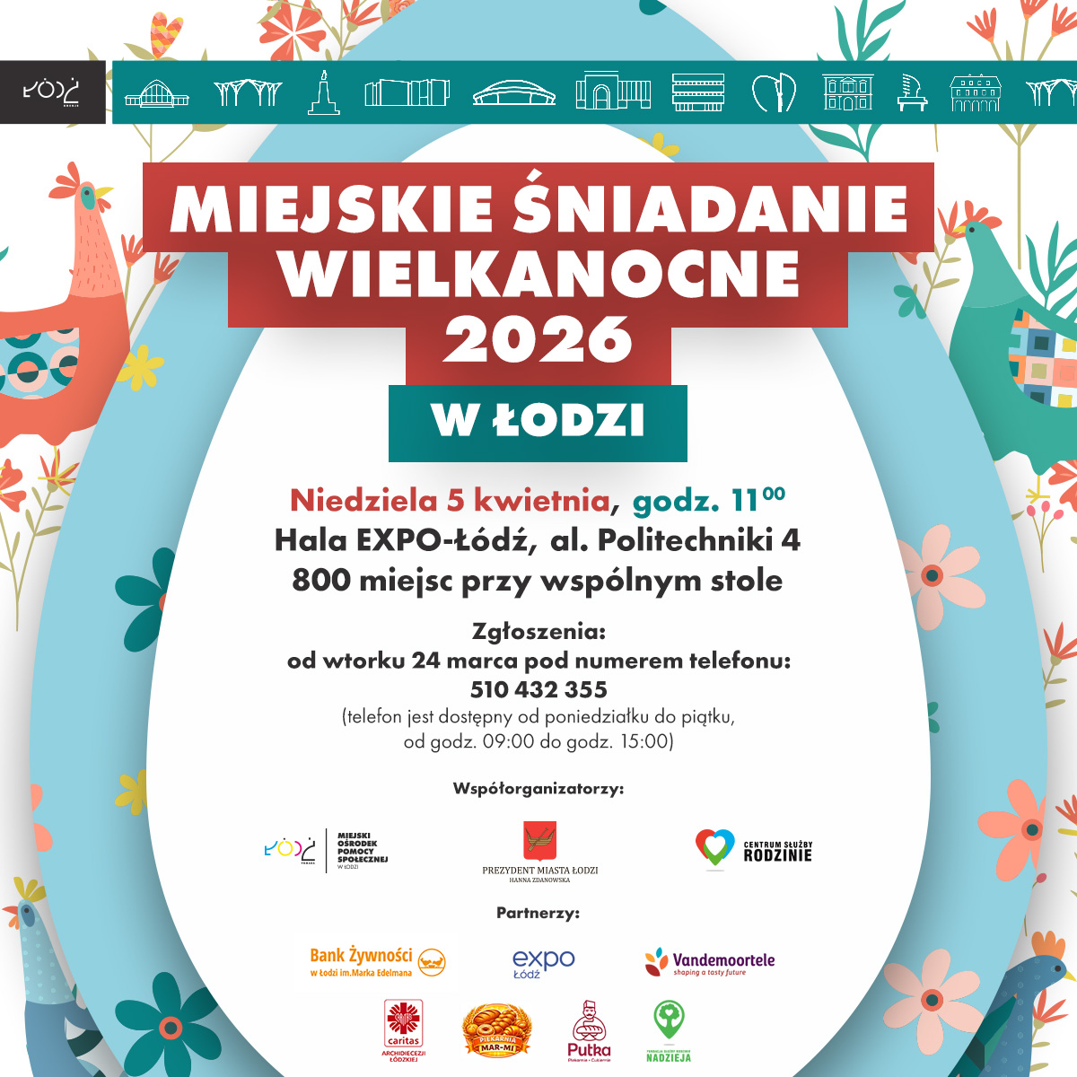 Urząd Miasta Łodzi i Miejski Ośrodek Pomocy Społecznej organizują 5 kwietnia Miejskie Śniadanie Wielkanocne. Wydarzenie odbędzie się w Hali EXPO-Łódź przy al. Politechniki 4, a początek zaplanowano na godz. 11. Na wspólny stół zaproszeni są wszyscy samotni mieszkańcy miasta – niezależnie od sytuacji materialnej czy statusu społecznego.