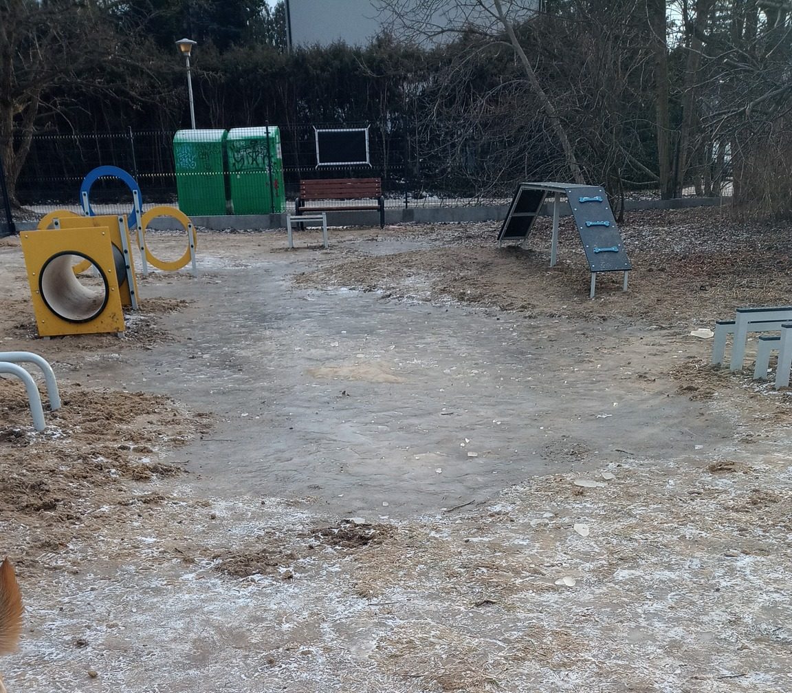 Mieszkańcy okolicy odpowiedzieli na jego relację obszernym postem. Zwrócili uwagę, że plac powstał na podłożu gliniastym, które nie przepuszcza wody. Oznacza to, że po każdych opadach teren zamienia się w ślizgawkę z błota. Na zdjęciach, które dołączyli do swojej odpowiedzi, widać zamrożone kałuże, ślady butów i psich łap wciśniętych w grząski grunt oraz kamienie i gruz, które zostały po budowie. Mieszkańcy wskazali też na stare drzewa owocowe, pod którymi zalega duża ilość zgniłych owoców i gałęzi. Ostrzegli, że psy próbują to jeść, co może skończyć się wizytą u weterynarza.