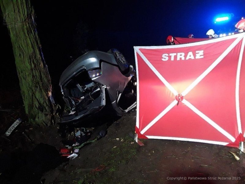 Do tragedii doszło tuż przed szóstą rano. Samochód zjechał z drogi i dachował. Kiedy na miejsce przyjechały służby ratunkowe, kierowca był zakleszczony w pojeździe.